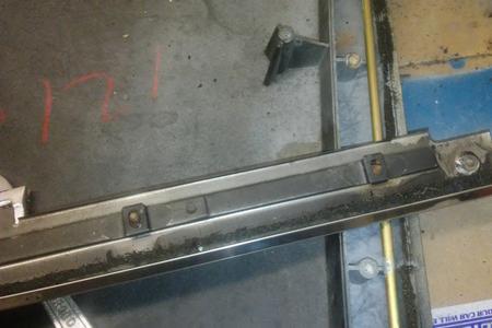 Drilling the screw heads off let me remove the metal strip. Underneath there are nut plates that need dealt with later in the project. These are shown on the right.